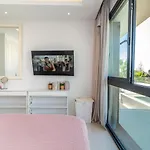 Located within a 4-km distance of the catholic Church of San Pedro, the 5-bedroom Remarkable 5-Bdrm Villa - Heated Pool & Gym Estepona offers a terrace with views of the mountain.
